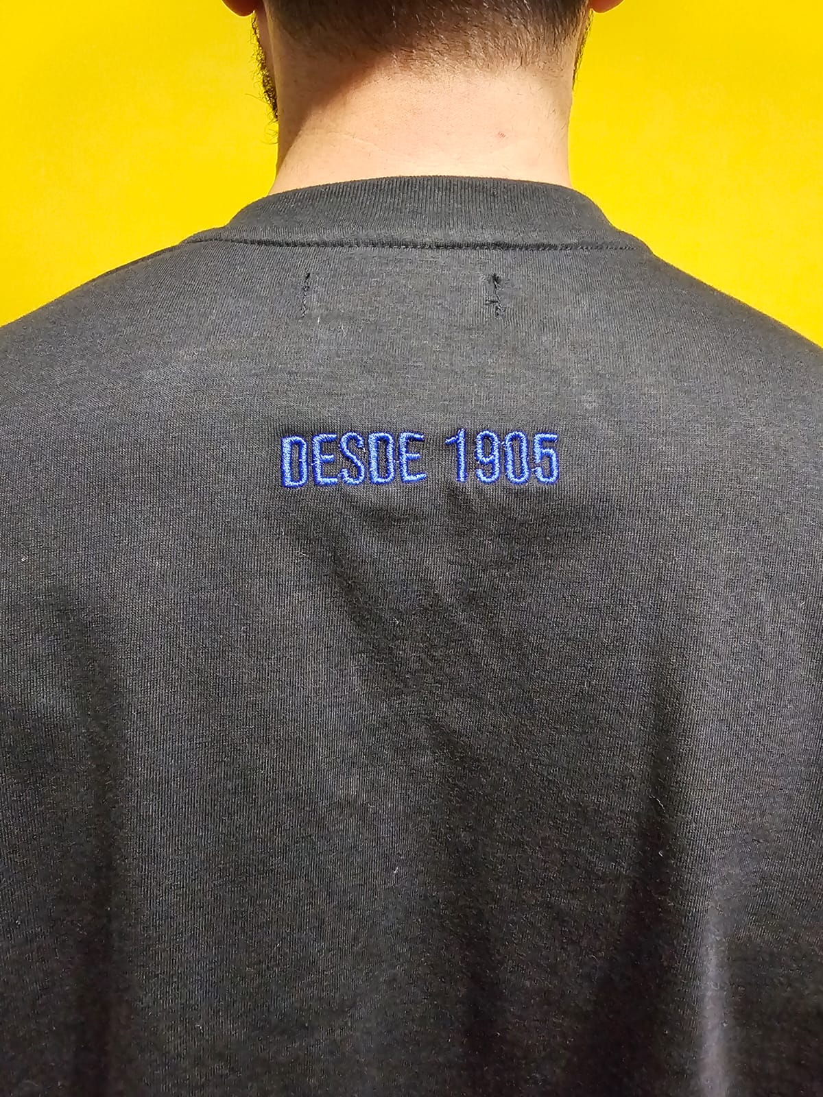 azul francia, azul marino, amarillo, blanco, gris, negro